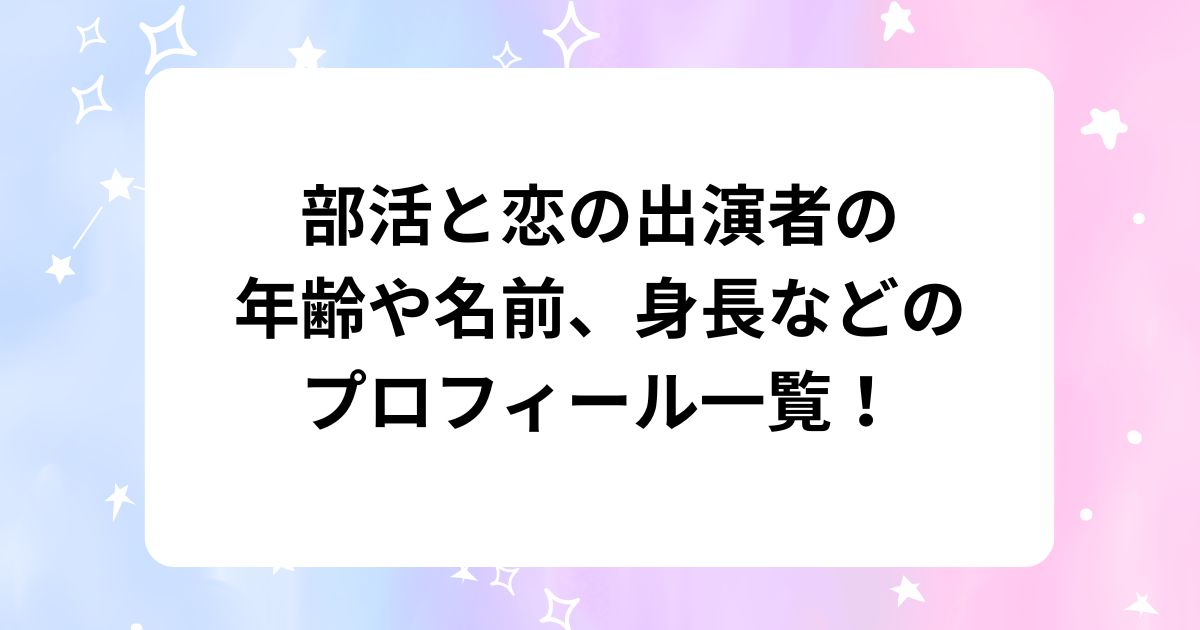 そこで、今回は【部活と恋】で出演されているメンバーの年齢や、名前、身長のプロフィールをまとめてみましたよ!