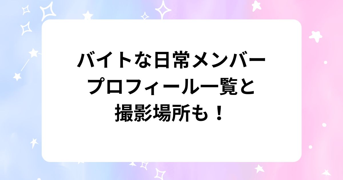 バイトな日常は、個性的なメンバー役にファンも多いですよね!