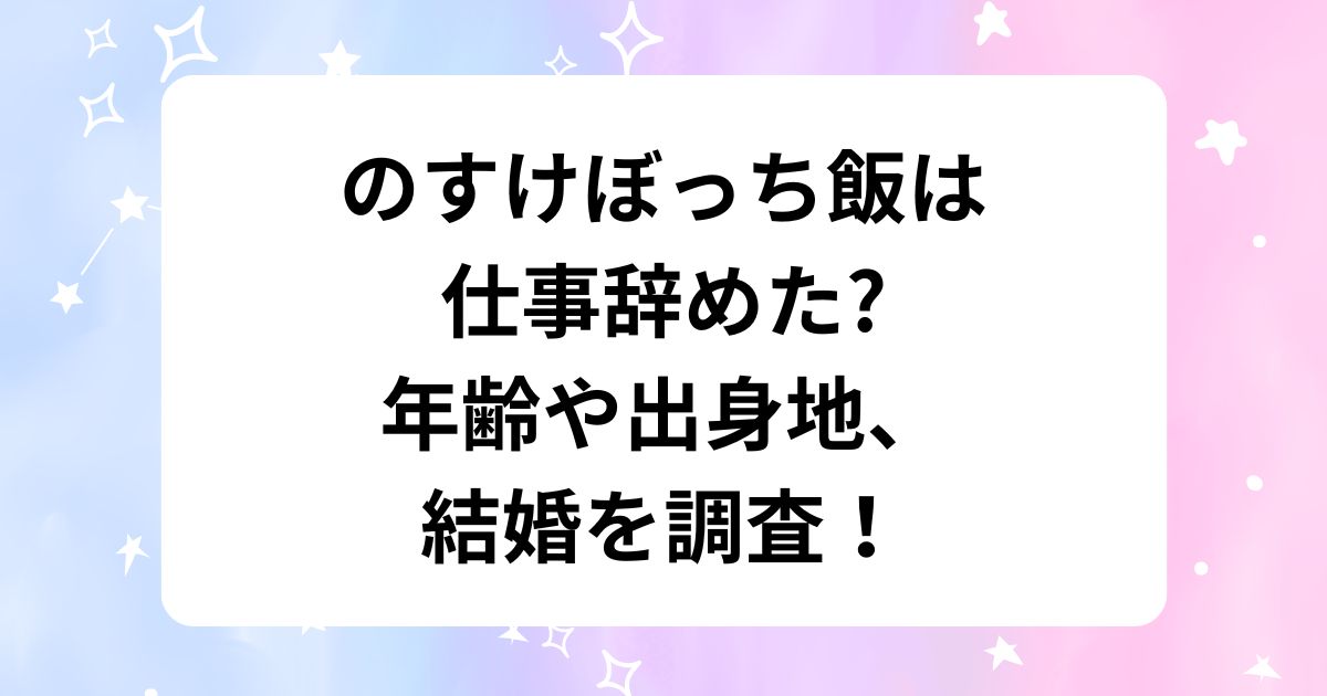 のすけぼっち飯は仕事辞めた?年齢や出身地、結婚を調査!