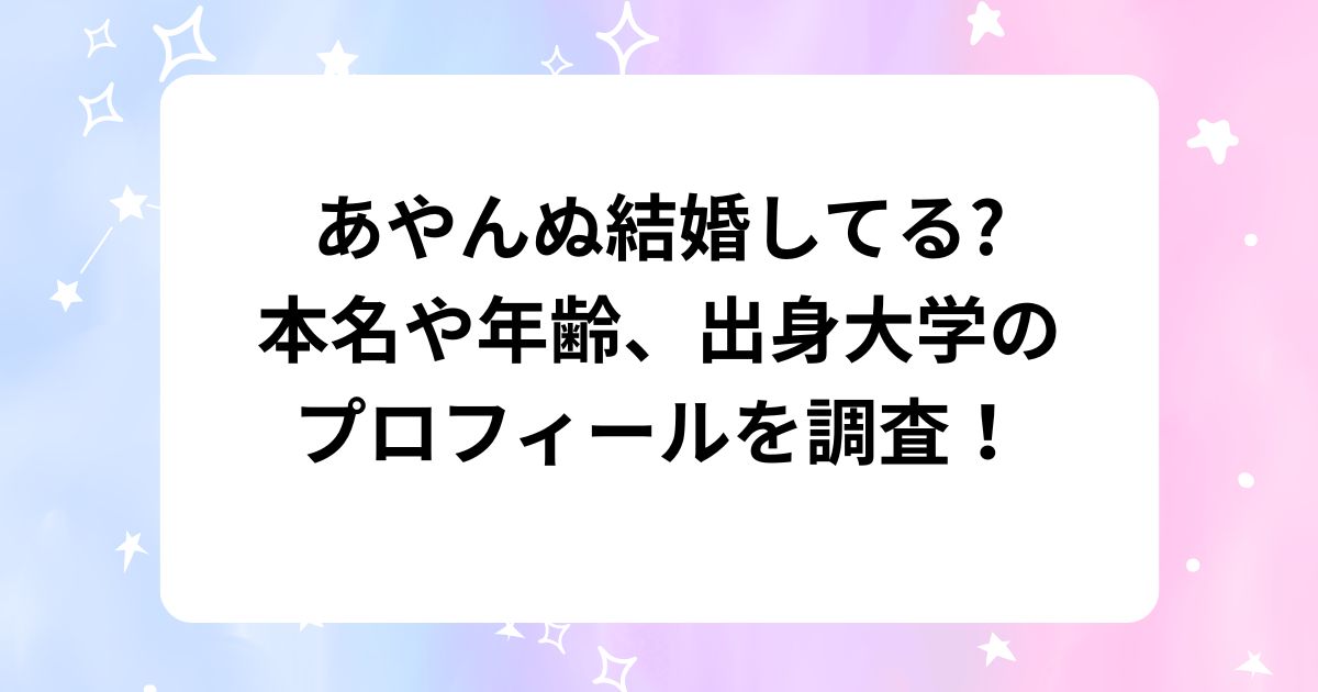 あやんぬ結婚してる?本名や年齢、出身大学のプロフィールを調査!