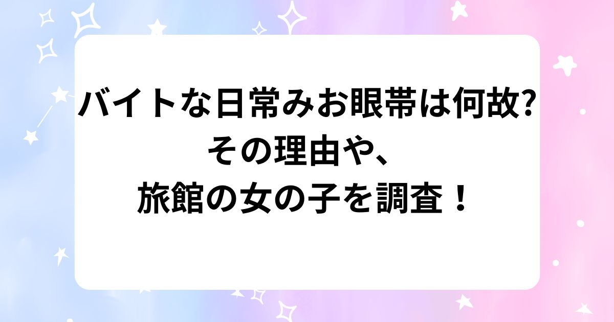 また、旅館で働いていた、女の子も可愛いと話題になりましたので、そこで今回は、みお眼帯は何故?その理由や、旅館の女の子は誰なのかを調査してみました!