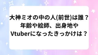 Vtuber 大神ミオの中の人(前世)は誰?年齢や絵師、出身地やVtuberになったきっかけは? 大神ミオといえば、柔らかい声で聞いているだけで癒されたり、包み込まれるような優しさから、頼れるお姉さん・母親のような存在ですよね!Vtuberの中でも、ミオママと呼ばれるほど慕われていますが、大神ミオの中の人(前世)が気になっている人も多い... 2025.08.05 Vtuber